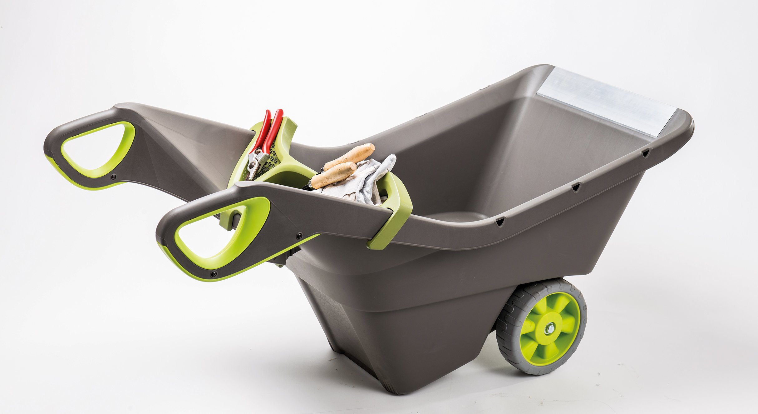 Тележка Realbarrow – это незаменимый помощник в саду и огороде, особенно для женщин. В отличии от традиционных металлических тачек, данная тележка выполнена из прочного пластика и имеет только металлический кант, что делает тележку Realbarrow легче традиционных тачек, и при этом не менее функциональной. В тележке удобно перевозить рабочие инструменты, компост и даже землю. Для Вашего удобства тележка Realbarrow оснащена жесткими прорезиненными колесами на металлической оси, а так же отверстиями по бокам тачки, в которых можно закрепить резинки или веревки для закрепления содержимого.